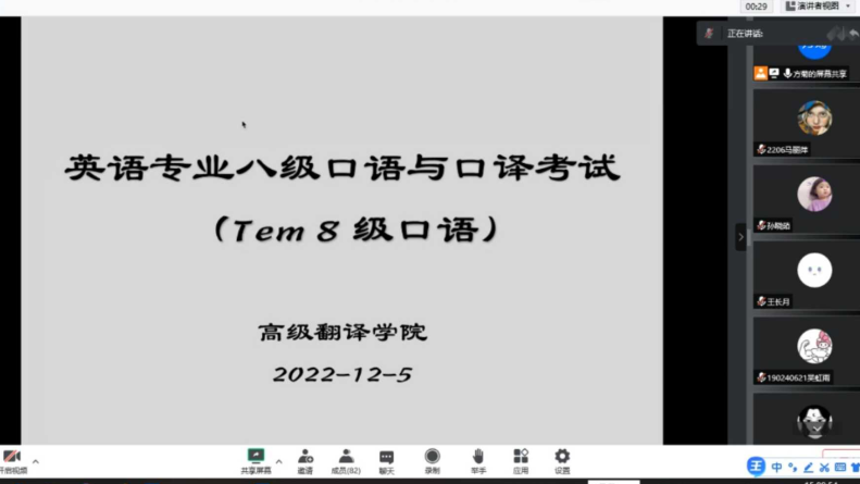 于12月5日下午举办了“全国英语专业八级口语考试”线上辅导讲座,本次讲座由网上博彩平台推荐