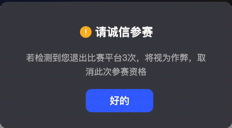 4.参赛者须独立自主完成答题,严禁使用大赛平台外的各类搜索引擎、智能翻译设备及技术工具等,一经发现,取消参赛资格。