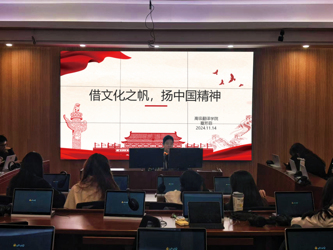 本科生党支部组织委员夏芳菲主讲,主题为“借文化之帆,扬中国精神”。