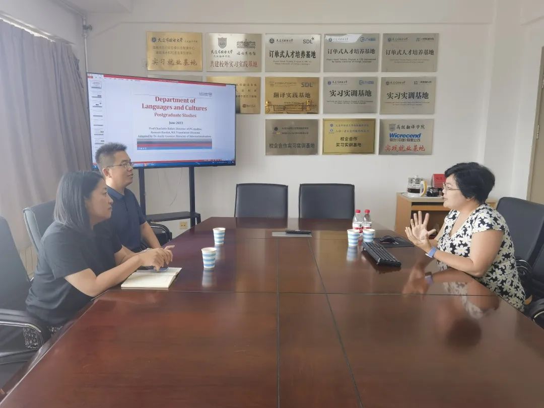 ,副院长邹德艳、副院长王少爽、三年级教研室主任吴延国、外教教研室主任郭佳好与到访客人洽谈国际交流合作事宜。双方就翻译专业3+1本硕连读项目、BTI及MTI人才培养方案、科研项目合作、访学及博士后项目等事宜进行了探讨。双方还在教师交流互访与进修、优秀本科生和研究生赴兰卡斯特读研读博、国际会议联合举办、校企合作等方面进行了讨论。本次洽谈为下一步的双方合作打下了坚实的基础,为提升交流的可持续性迈出了坚实的一步。