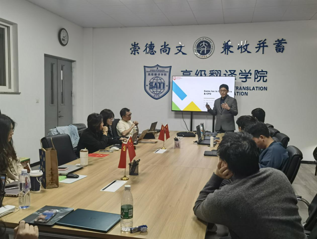 师生积极参与。何博士系统性地阐述了游戏本地化的基础理论、行业生态以及其在全球化背景下的重要性。他从游戏开发企业、本地化服务提供商及语言翻译专家的多元视角出发,详尽剖析了从项目筹备至最终发布的全过程专业流程,展现了游戏本地化工作的复杂性和精细性。何博士进一步指出,游戏本地化工作者在执行翻译任务时,必须全面考虑目标市场的文化特性、法律法规等多重因素,强调了跨文化沟通的重要性。何博士探讨了游戏本地化在翻译学研究中的独特位置,着重讨论了游戏本地化所面临的特殊挑战,如多媒体内容的恰当处理、游戏机制与玩家体验的双重维护等。何博士的讲座为致力进入游戏本地化行业的学生提供了全面的视角和实用的工具,帮助学生在未来更快融入行业,并在快速发展的行业中保持竞争力。