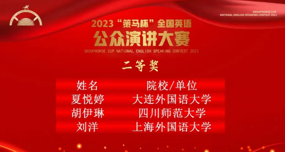 在全国总决赛的舞台上,高翻学子勇往直前,克服重重困难。在总决赛的第一轮中,夏悦婷同学在定题演讲和即兴问答两个环节中表现出色,在二十四名选手中排名第四,并晋级到了下午的第二轮即兴对抗赛。经过一番激烈的竞争,夏悦婷同学最终荣获全国二等奖。